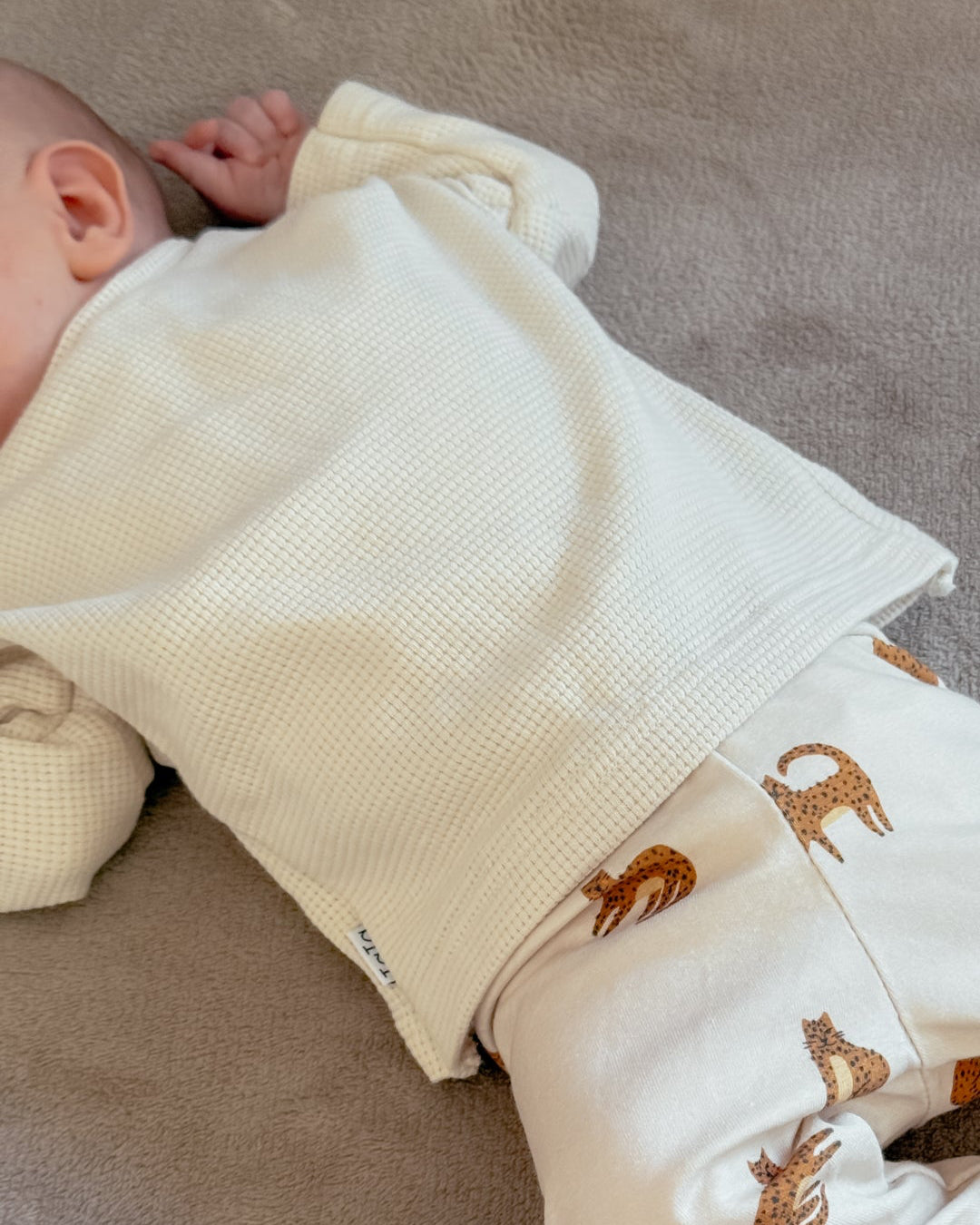 Weich, bequem und mit niedlichen Leoparden. In den kleinen Größen erhältst du die Leggings mit hohem Jersey-Bündchen, ab Gr. 86/92 mit Gummibund. Eine wunderschöne Lieblingssache für kleine Entdecker:innen.