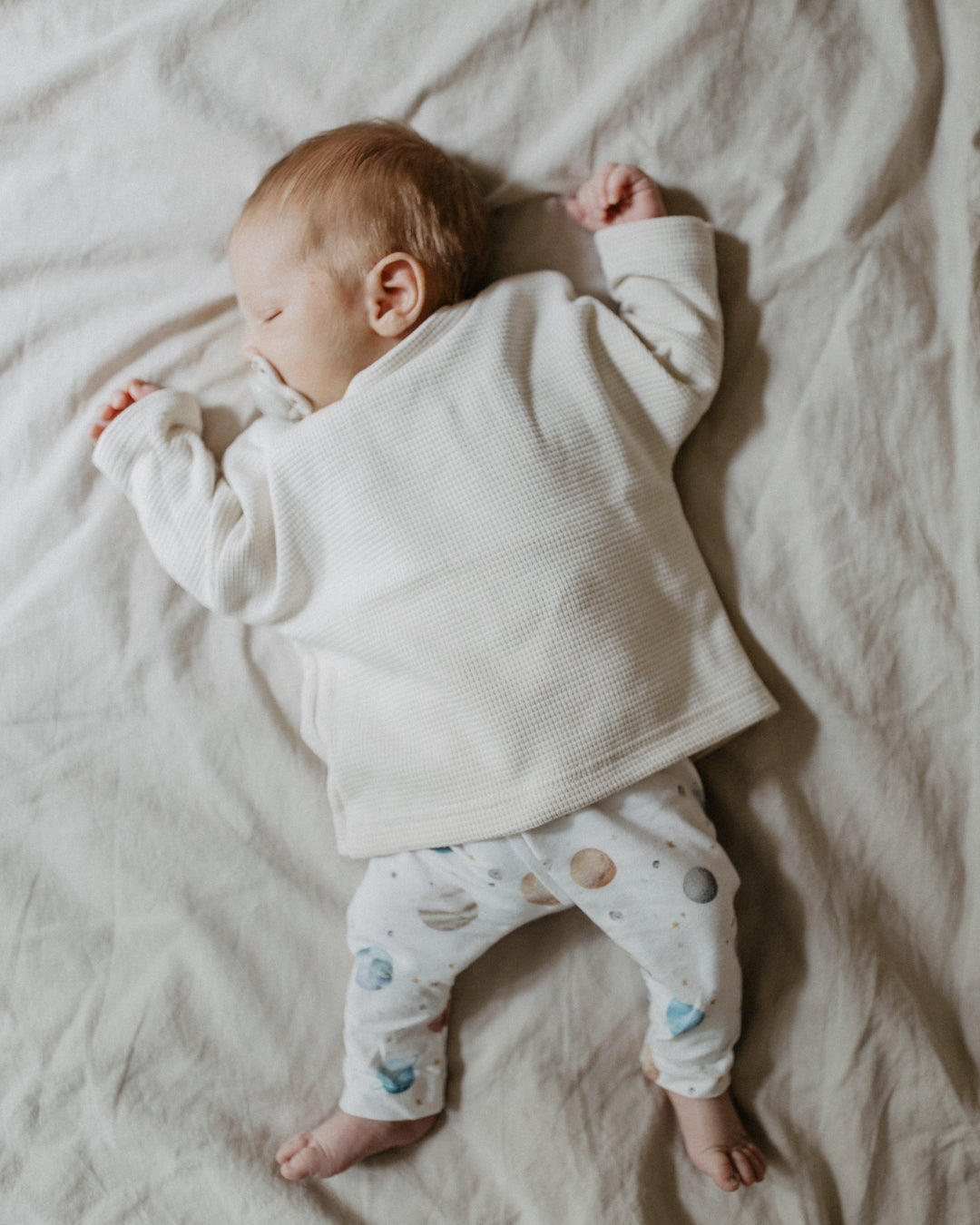 Weich, bequem und mit goldigen Sternen und Monden. In den kleinen Größen erhältst du die Leggings mit hohem Jersey-Bündchen, ab Gr. 86/92 mit Gummibund. Eine wunderschöne Lieblingssache für kleine Entdecker:innen.